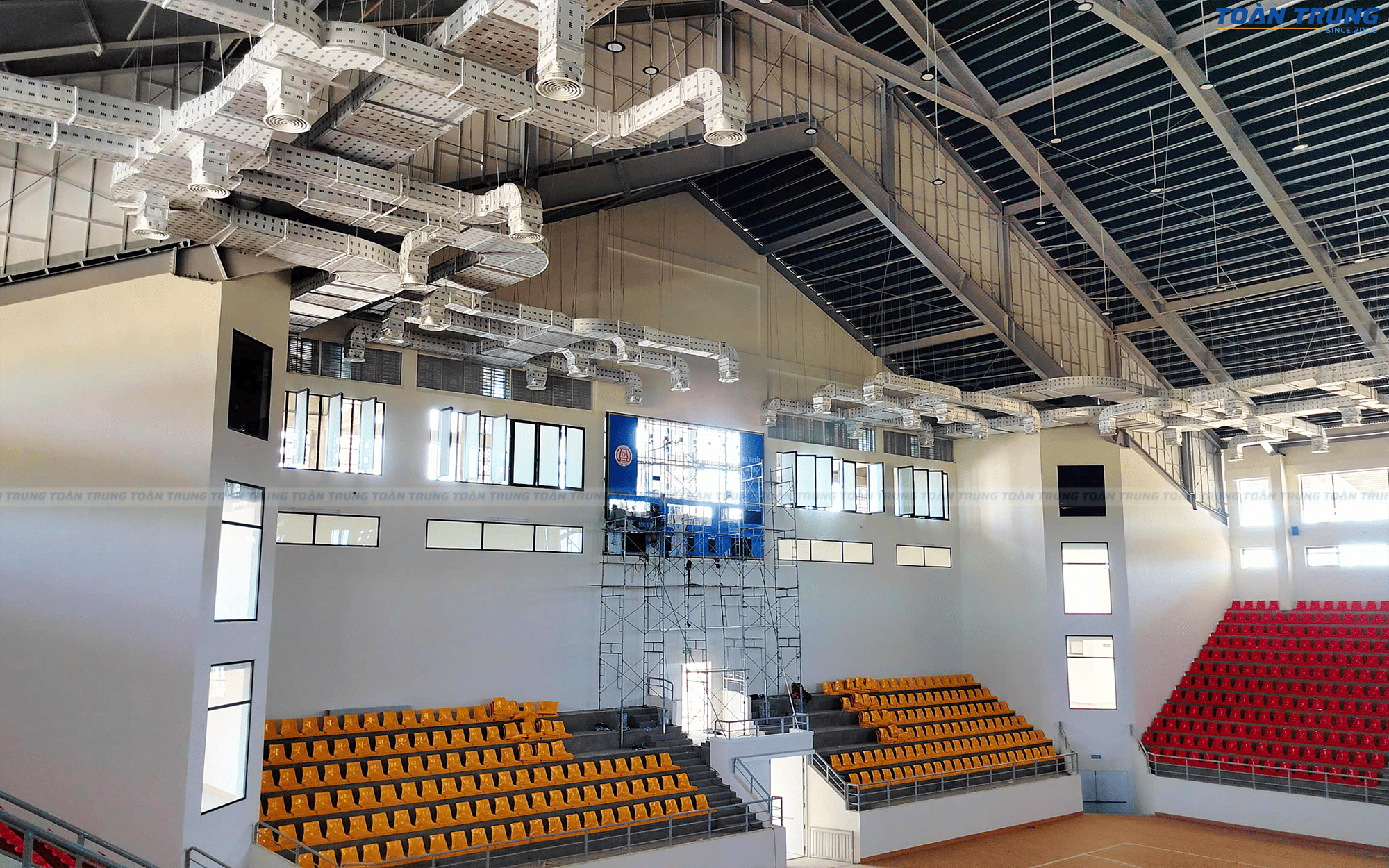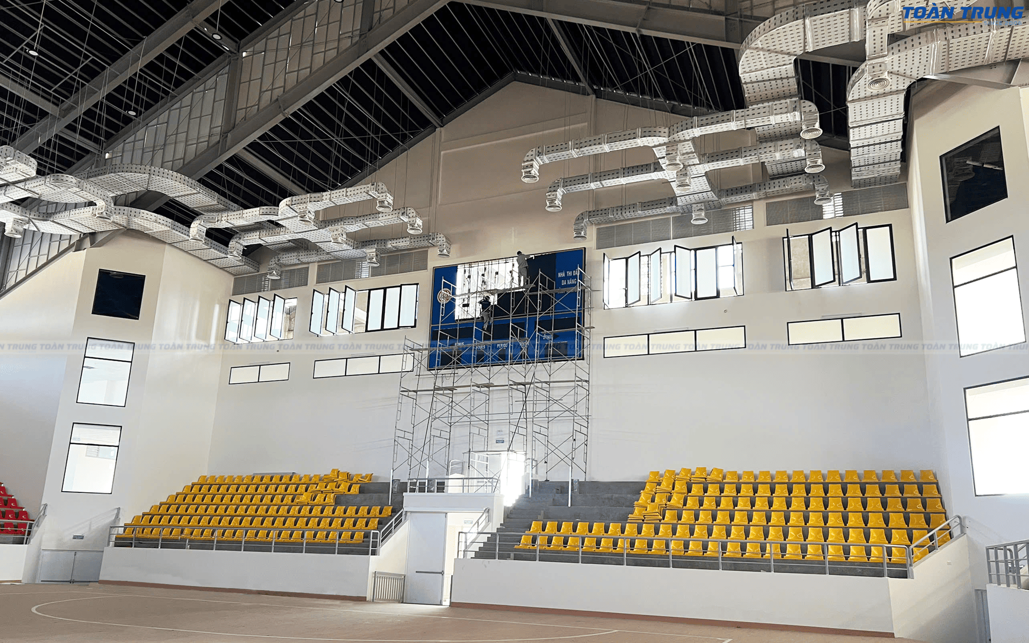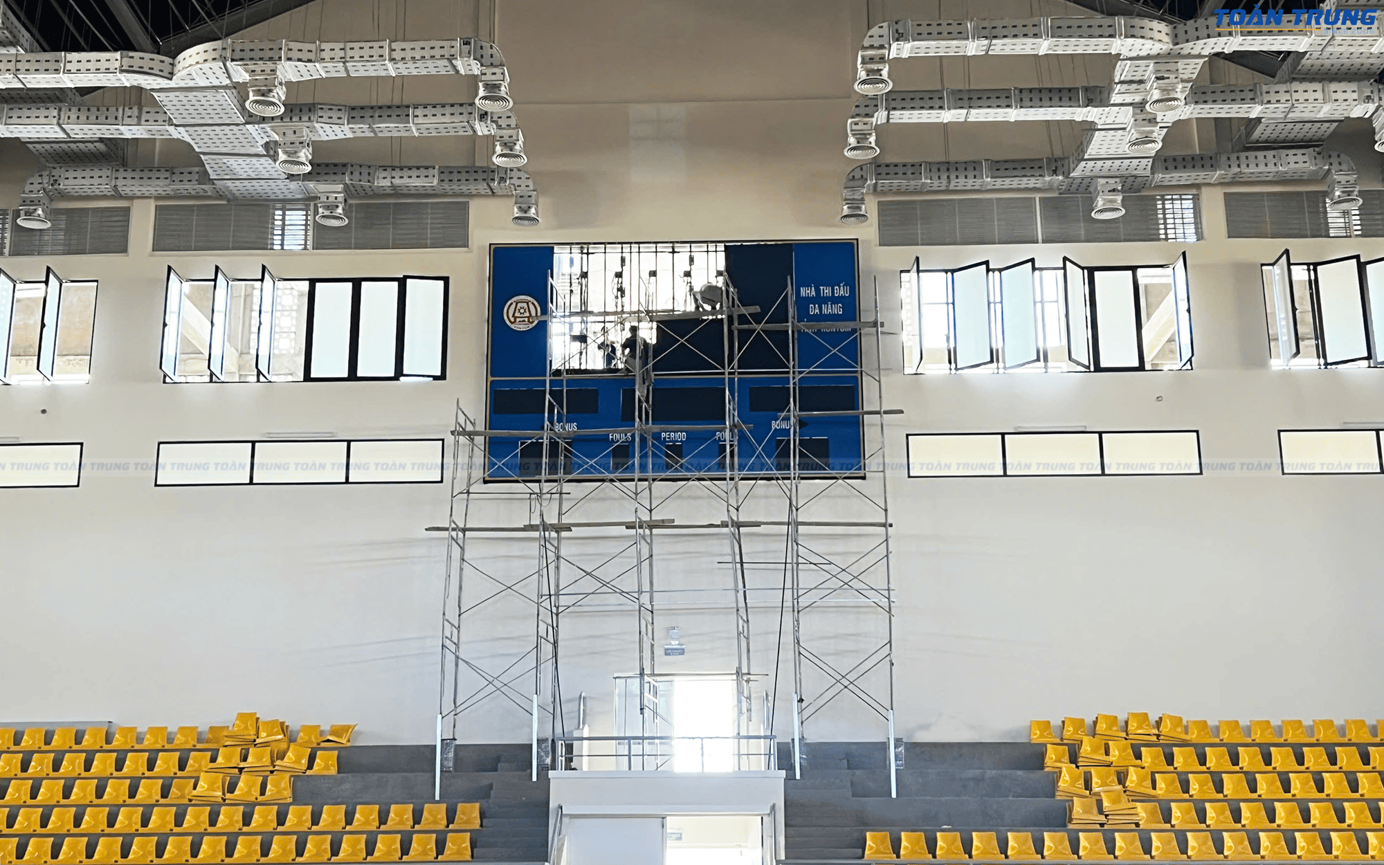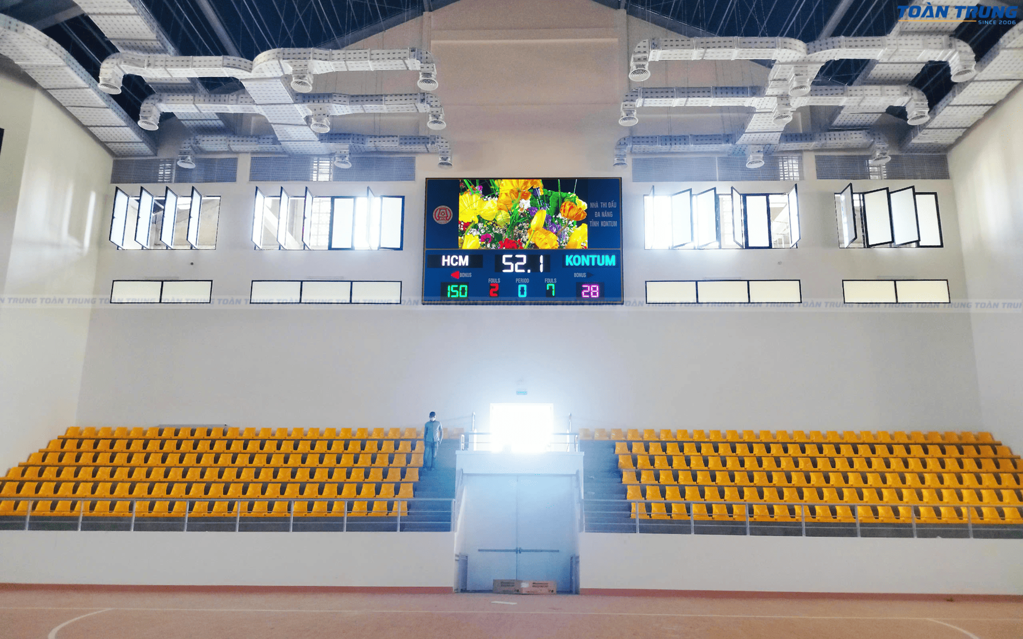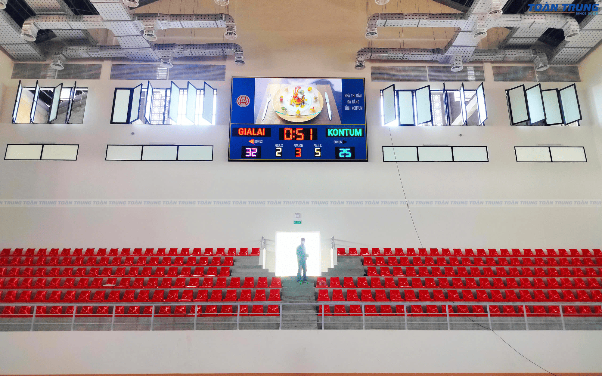 Nhà thi đấu Kon Tum vừa được trang bị bảng điện tử thi đấu đa môn, đáp ứng tiêu chuẩn chuyên nghiệp cho nhiều bộ môn thể thao như bóng rổ, cầu lông, bóng chuyền, futsal,... Với khả năng hiển thị rõ ràng, chính xác và linh hoạt, bảng điện tử giúp ban tổ chức dễ dàng quản lý thời gian, điểm số và thông tin trận đấu.