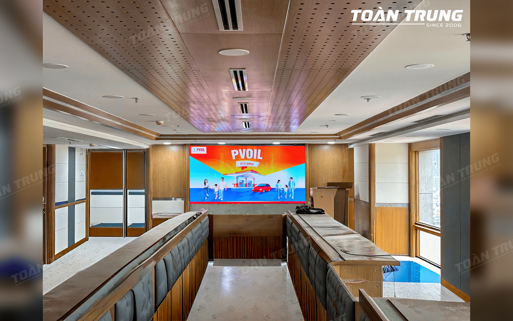 Màn hình LED P1.5 indoor cho phòng họp của PVOil với độ phân giải siêu nét, màu sắc trung thực và khả năng trình chiếu linh hoạt, mang đến trải nghiệm hình ảnh sắc bén, hỗ trợ tối đa cho các buổi họp, hội nghị và thuyết trình quan trọng.